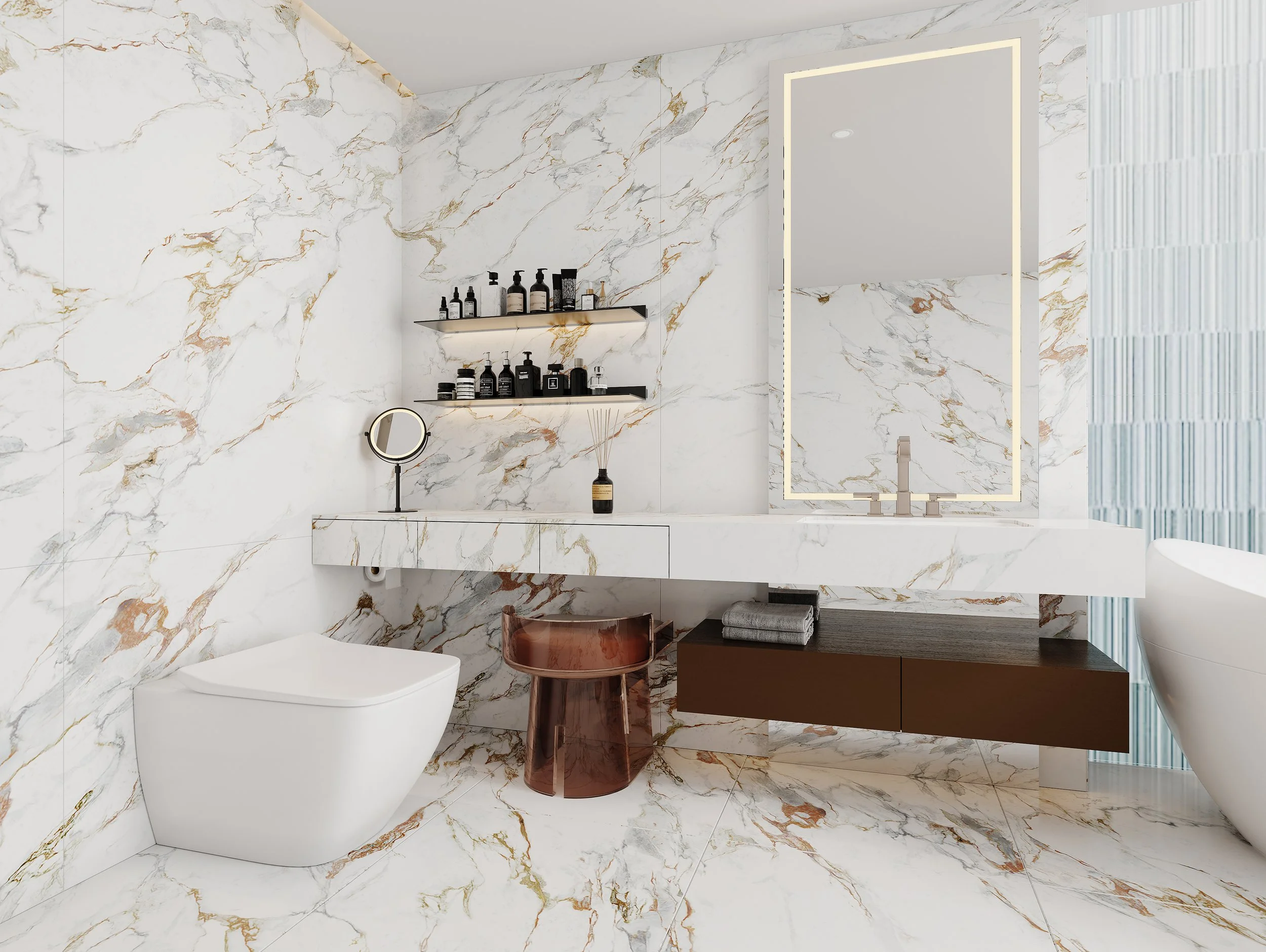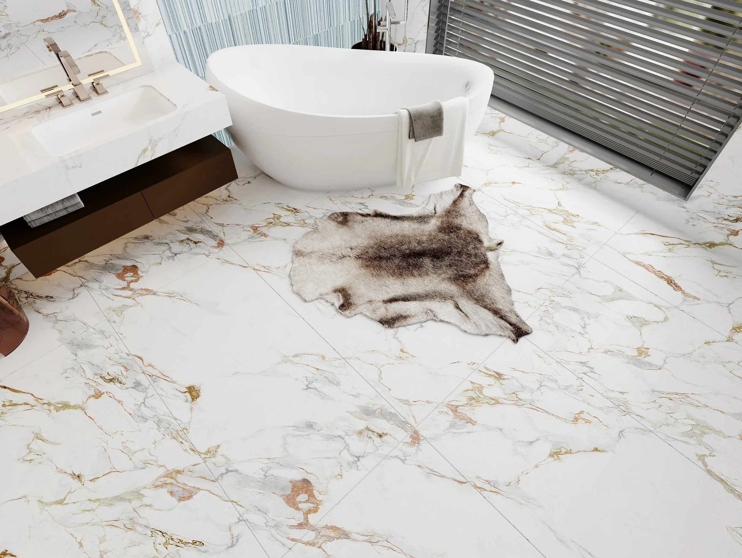 Calacatta Oro is a salute to the quintessential elegance inherent in the Italian stone that shares its name. Esteemed for its rich, warm veins that elegantly traverse a pristine white background, the natural Calacatta Oro is the epitome of luxury and grace. It is celebrated not just for its striking appearance but for the story each vein tells—a narrative of the earth's history encapsulated in its design.