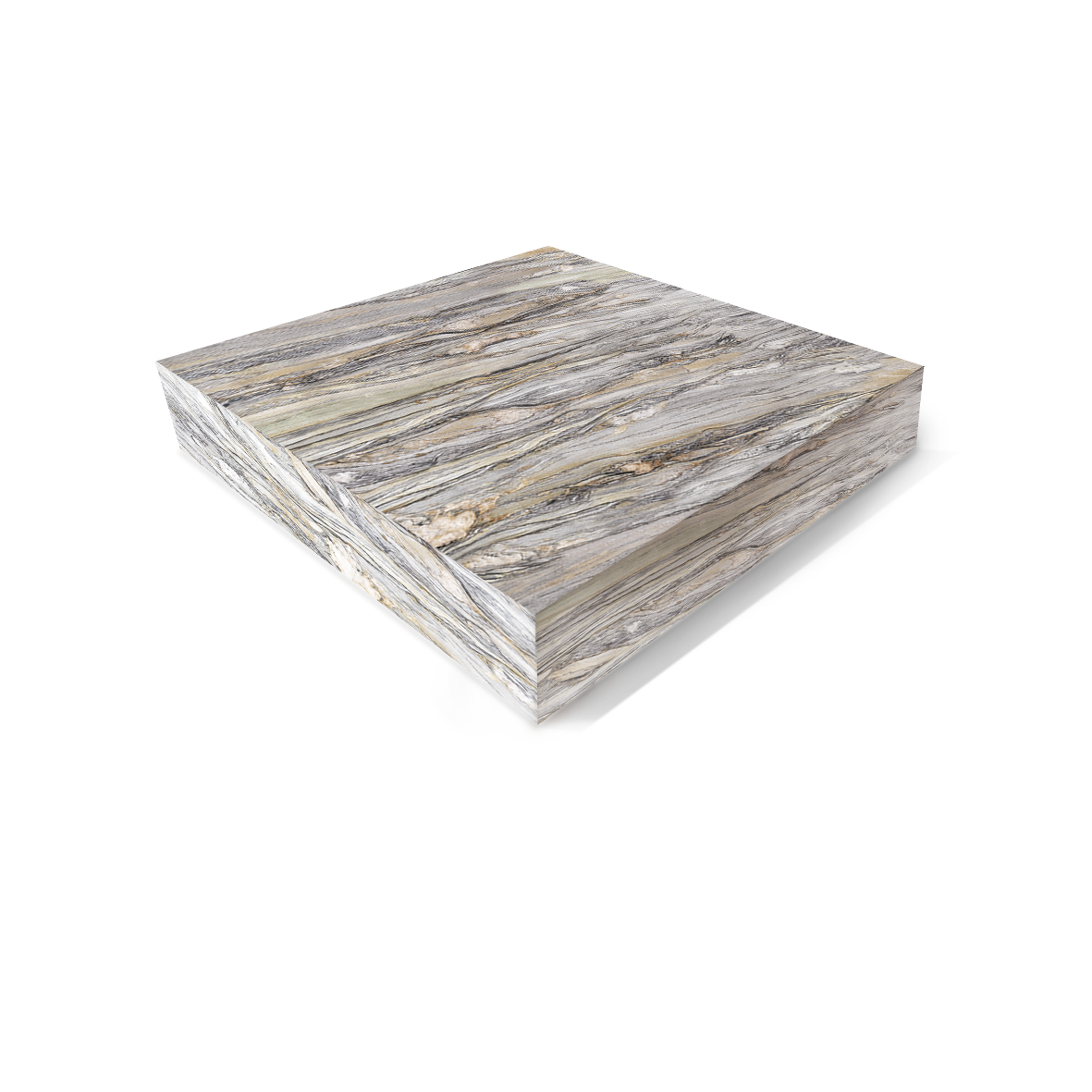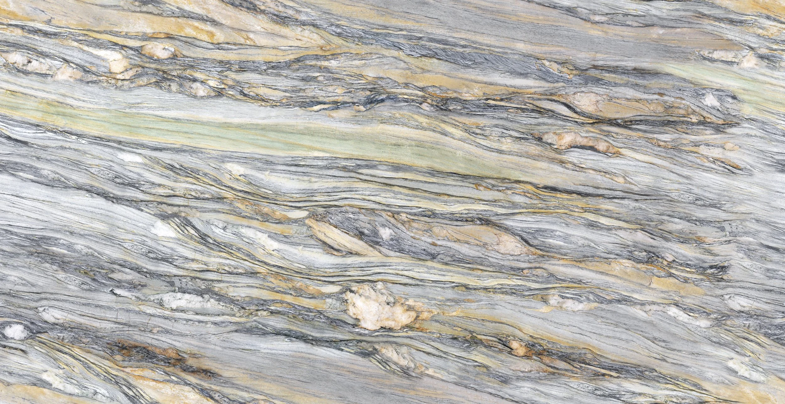 Fusion showcases a mesmerizing array of colors and patterns that mirror the dynamic interplay of earth’s natural forces. Originating from exclusive quarries in South America, this stone features unique waves of deep blues and greens mixed with bursts of orange and cream, resembling the earthy textures found in ancient riverbeds. The complex layering and color transitions in Fusion make it a visual spectacle, capturing the essence of geological artistry.