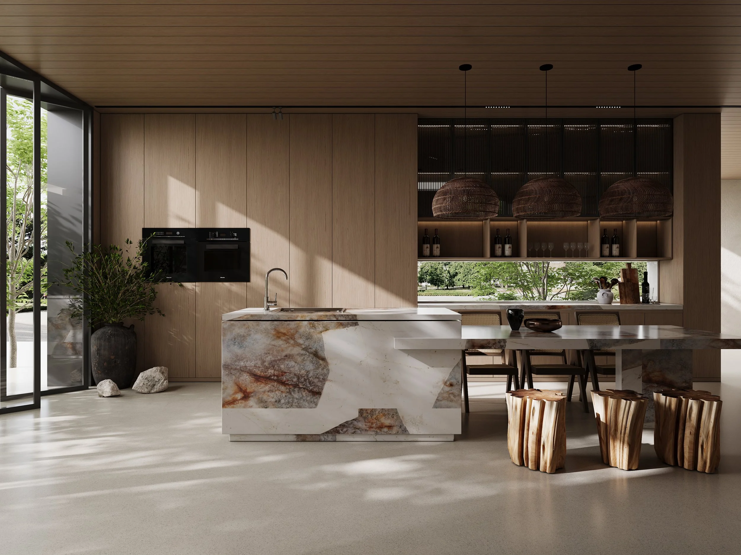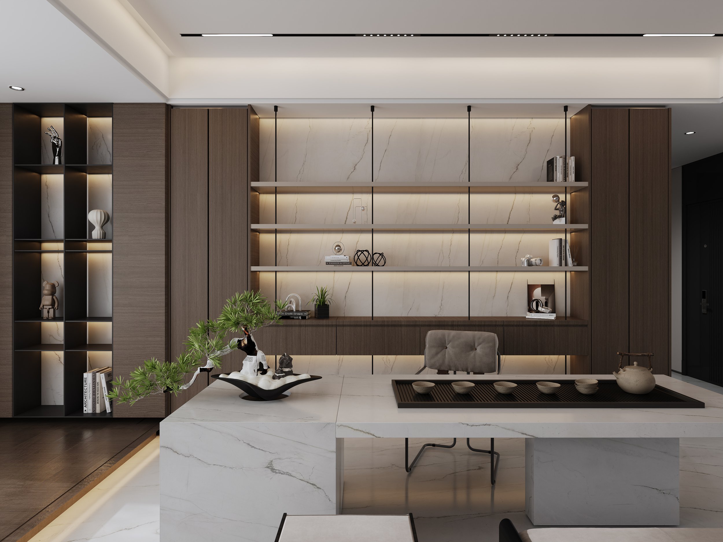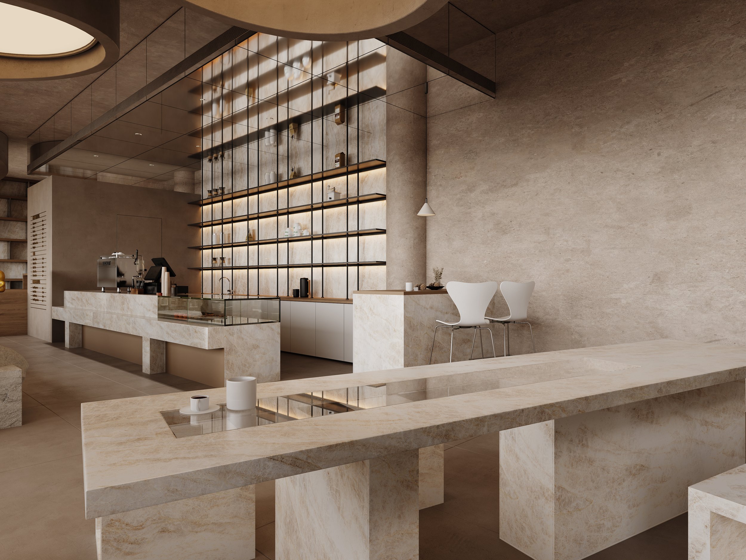 A unified material language that flows throughout the space